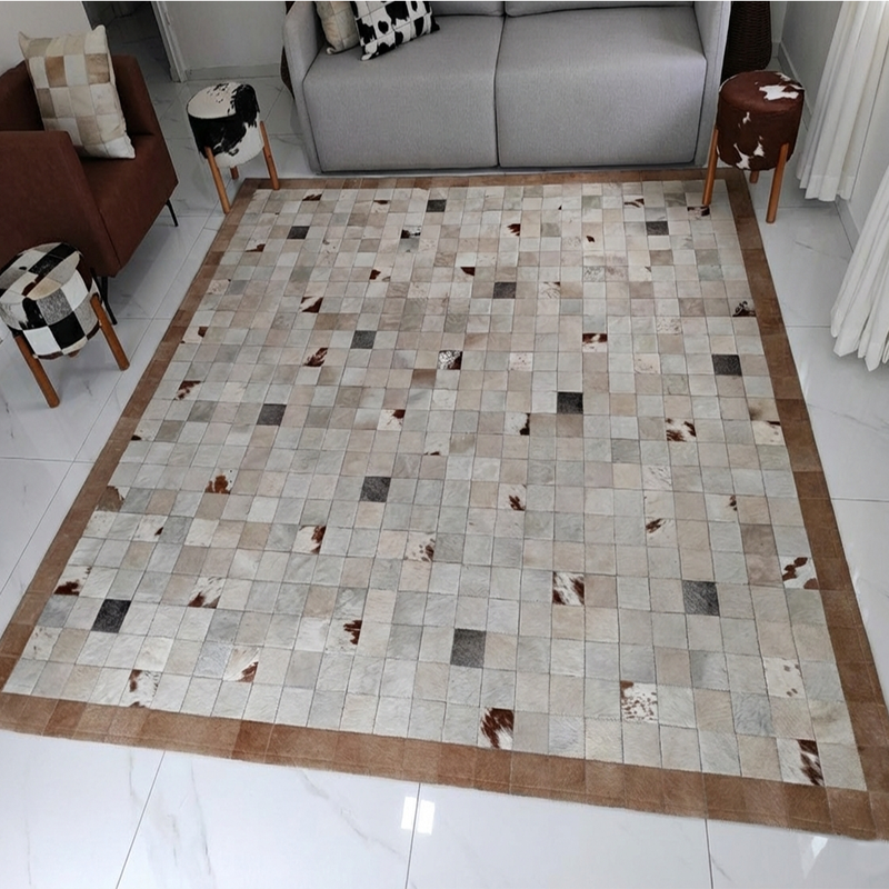 Que tal decorar seu ambiente com um tapete de couro de vaca quadriculado, agregando estilo e sofisticação para sua casa. O tapete de couro de boi natural Pele Sul, é fabricado em couro animal, 100% natural, contando ainda com um forro antiderrapante em poliéster.
